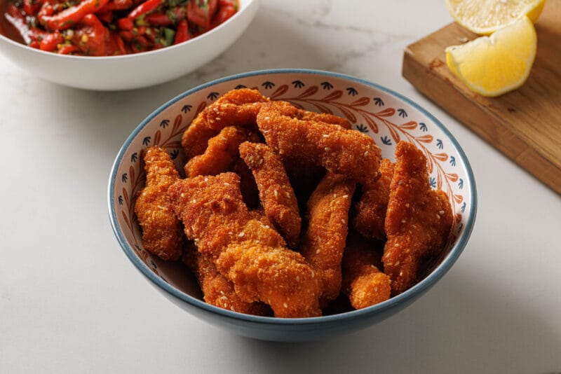 בזמנים רגילים, הייתם כנראה עומדים במטבח ומטגנים ערימות של שניצלים בשביל להשביע את כל ילדי המשפחה וחבריהם הרעבים. איזה מזל שהשניצלונים של טנא יהפכו אתכם גם בחג הסוכות לבני חורין. הם עשויים פילה עוף רך ועסיסי בציפוי פירורי לחם קראנצ’יים ושומשום, שילוב שאין אחד שלא אוהב, ומצריכים רק חימום קצרצר בתנור. סדרו אותם בערימה על צלחת גדולה יחד עם רוטב צ’ילי שום בצד להקפצת הביס, ותהפכו להורים האהובים בשכונה.