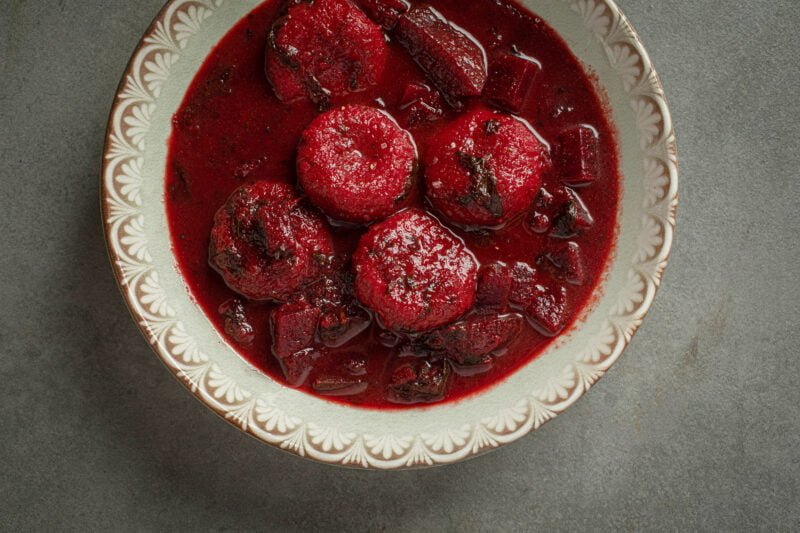 גוף המרק קליל, חתיכות הסלק ממלאות את הגוף בבריאות וסיבים תזונתיים, והקובות עצמן רכות ונעימות, ומקיימות את האיזון המושלם בין כמות המילוי לציפוי הסולת הדק והעדין, בדיוק כמו בבית.