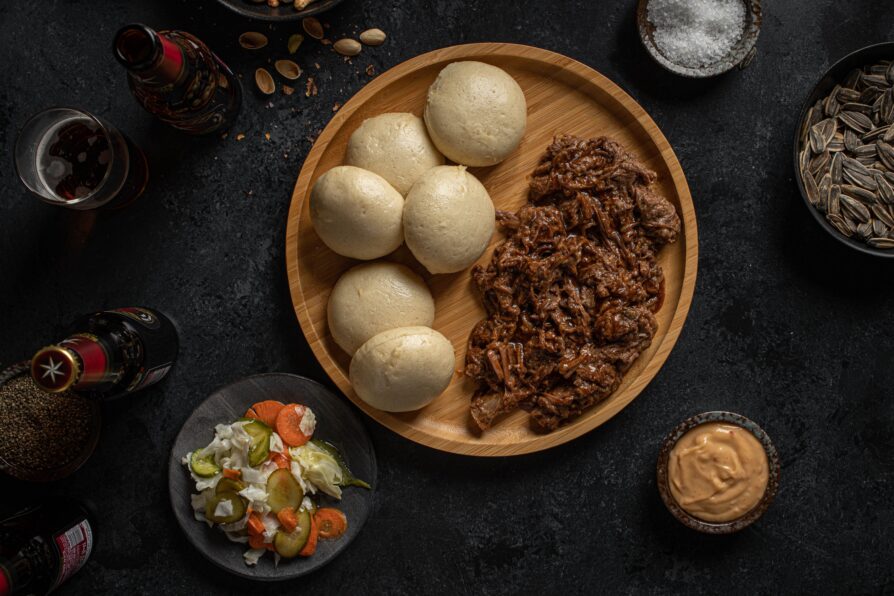 בשר אסאדו בבישול ארוך מפורק עם מארז 10 לחמניות באן.