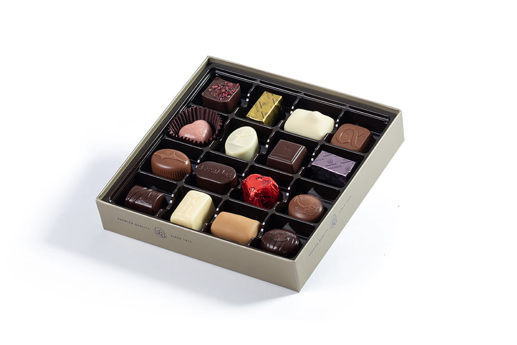 המארז מכיל 16 פרלינים משובחים במגוון טעמים מופלאים, העשויים מ-100% חמאת קקאו טהורה ומושלם לרגעי אושר מתוקים ומפנקים במיוחד.