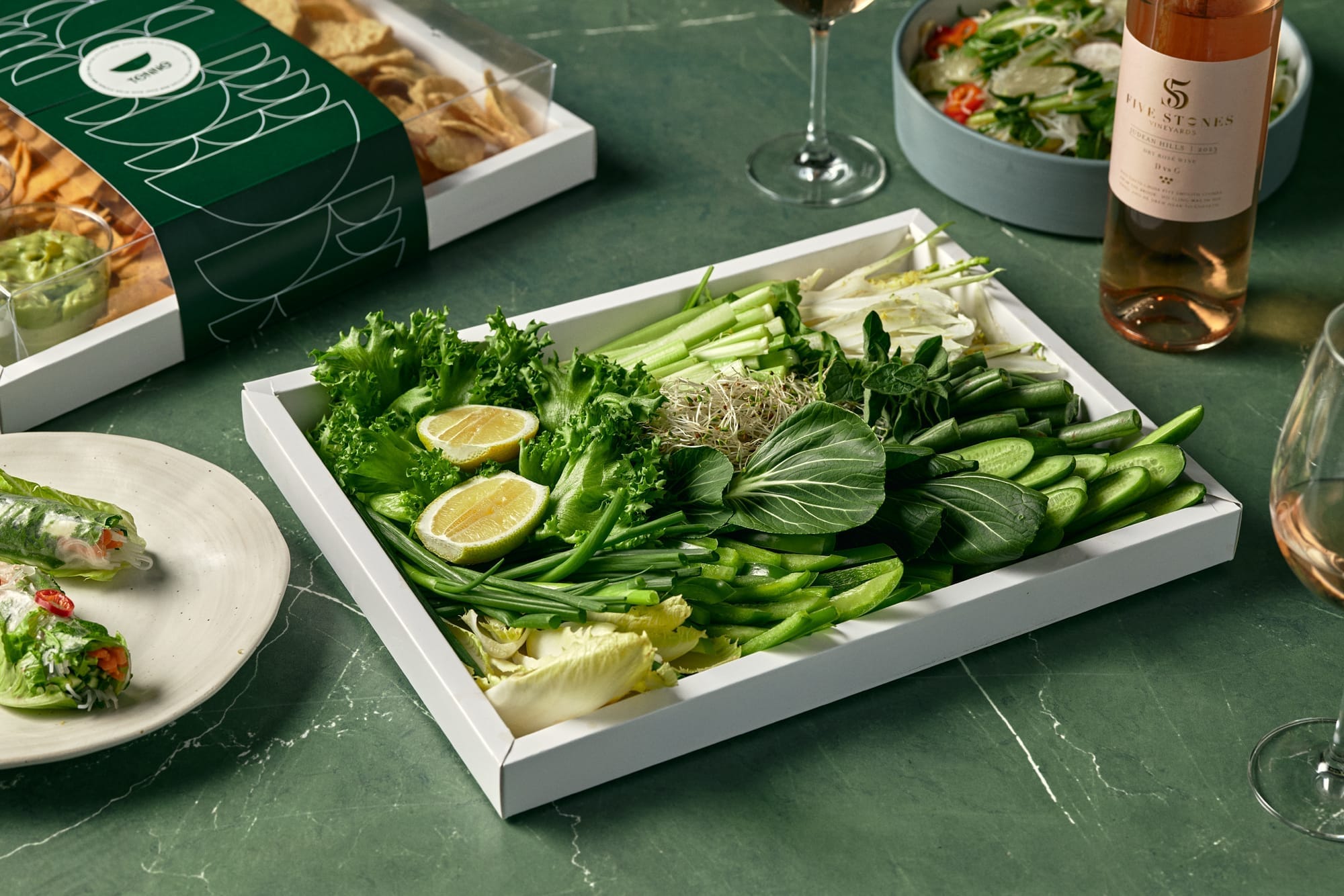 מגש שכולו רעננות בועטת, עם ירקות טריים ופריכים שמצליחים להרים ולהקליל כל מנה.