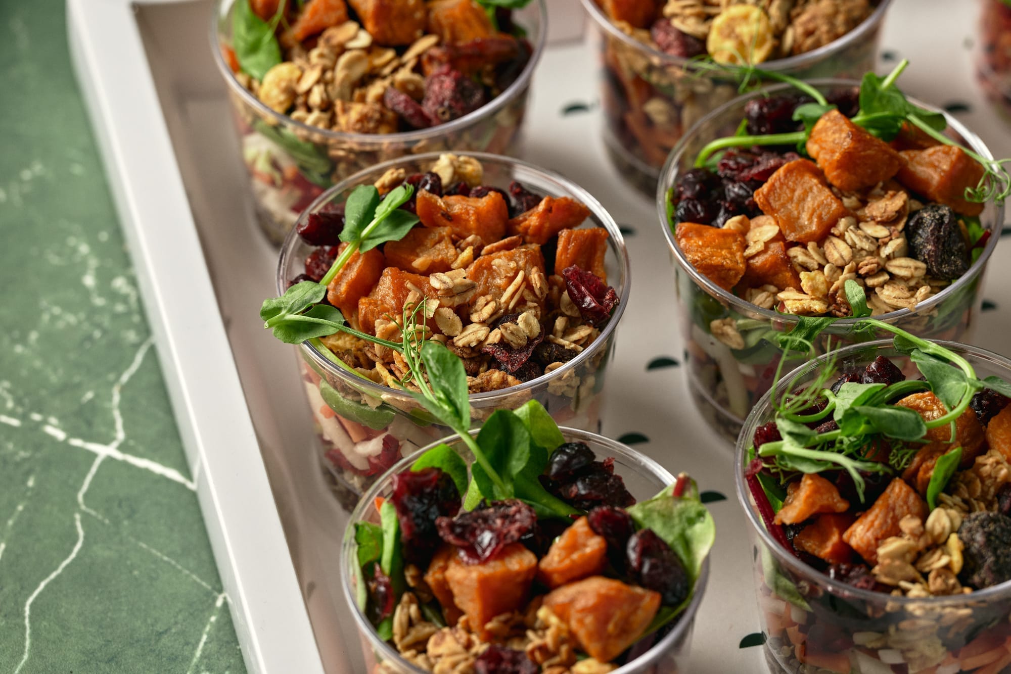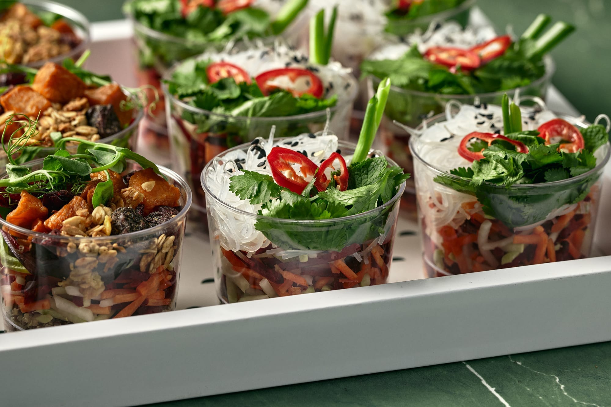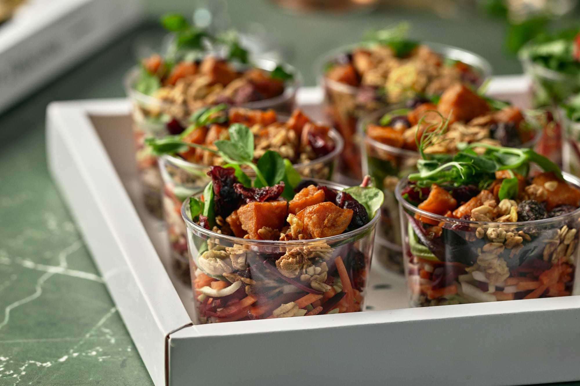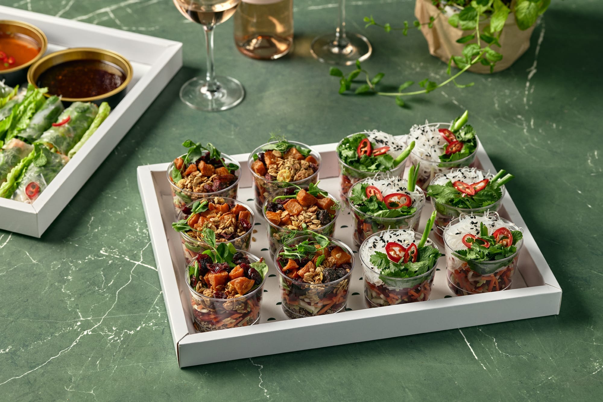 לאירועי מינגלינג, כדי להסתובב במרחב בלי להיצמד לשולחן – ארזנו את הסלטים האהובים בטנא ליחידות מלאות כל טוב.