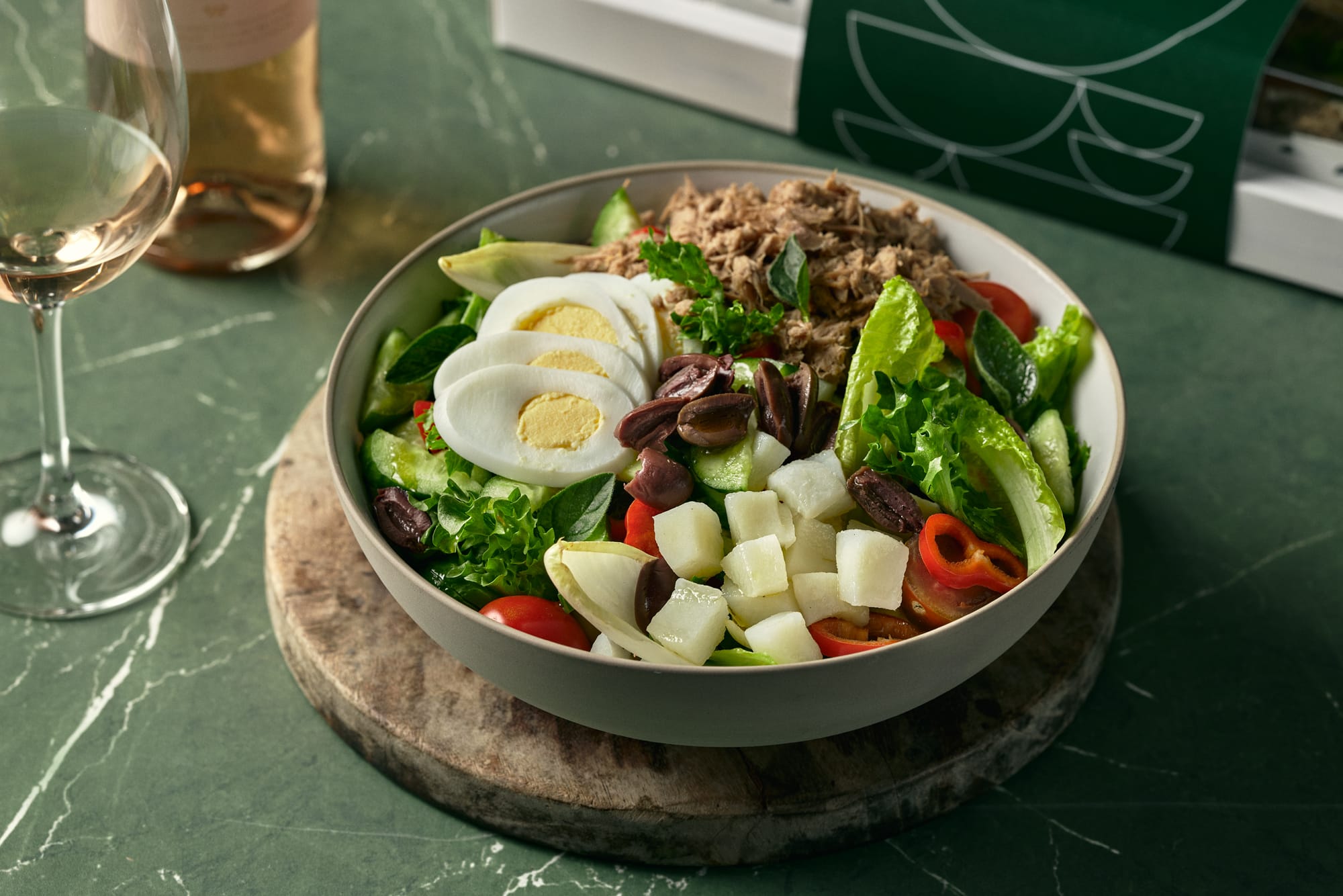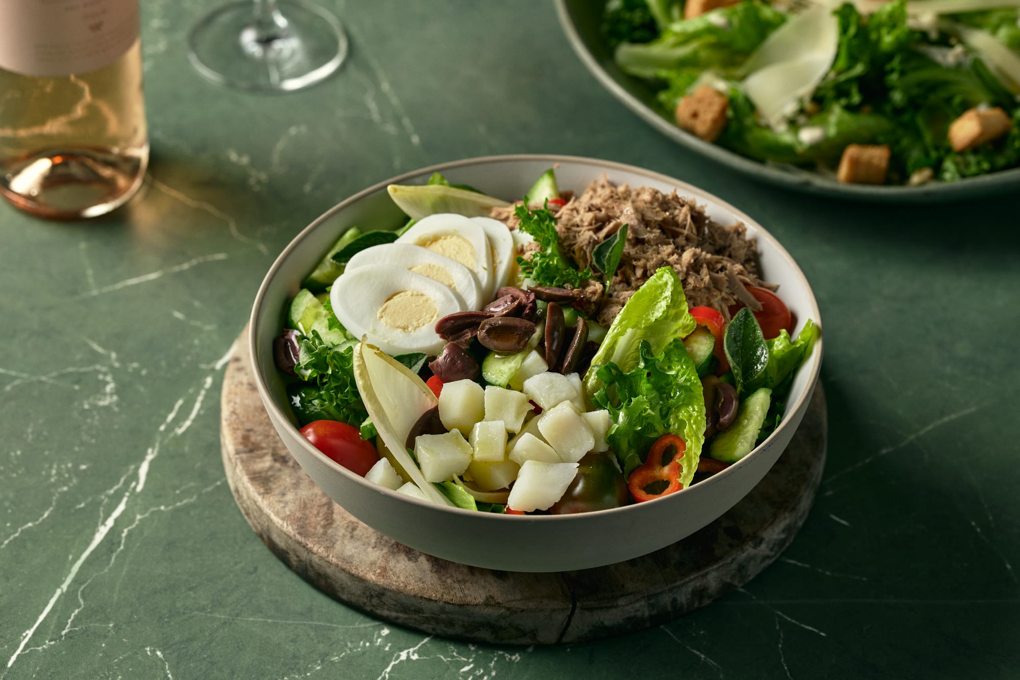 במקור מדרום צרפת אבל 100% ישראלי – סלט ניסואז הוא הסלט שצריך עם אנשים שאוהבים. תפוח אדמה, עלי אנדיב, טונה, זיתי קלמטה ורוטב קיסר שהופך את כל האכילה לחוויה שלמה.