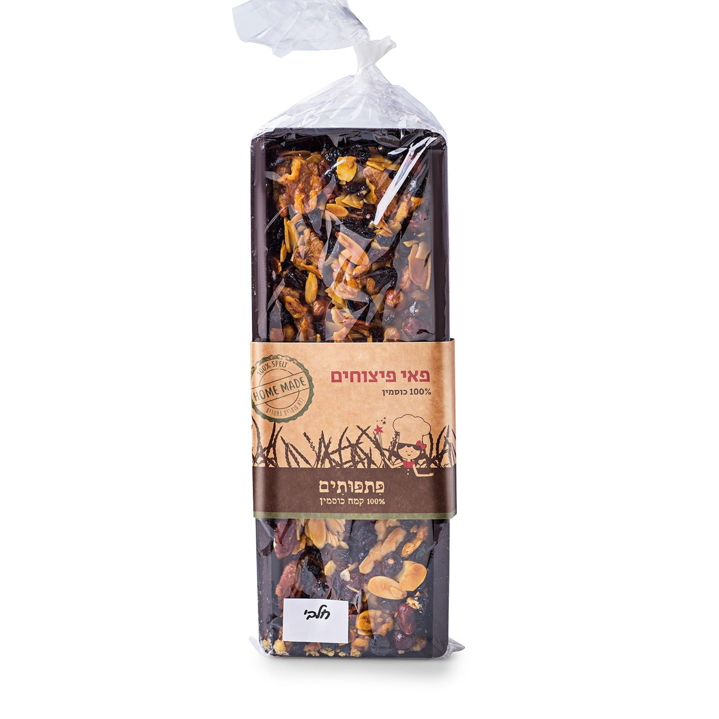 במגוון המוצרים: פאי אגוזים, שקדים ופיצוחים , עוגיות כוסמין ומקלות כוסמין פריכים במגוון טעמים.