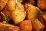 קוביות תפוחי אדמה ובטטה אפויים בתנור.